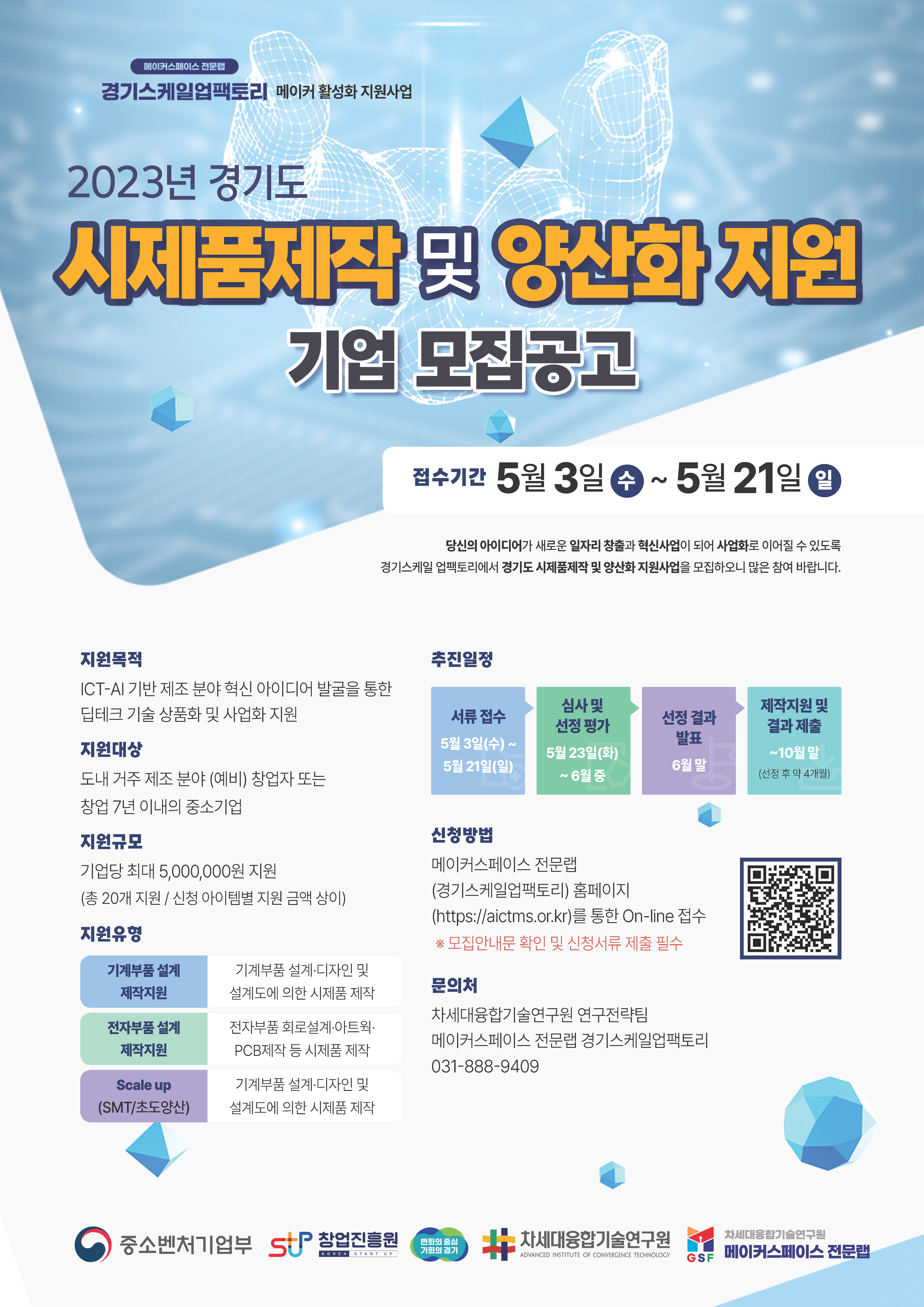 [공고] 2023 경기도 시제품 제작 및 양산화 지원 모집공고 안내문 -> 다운 클릭