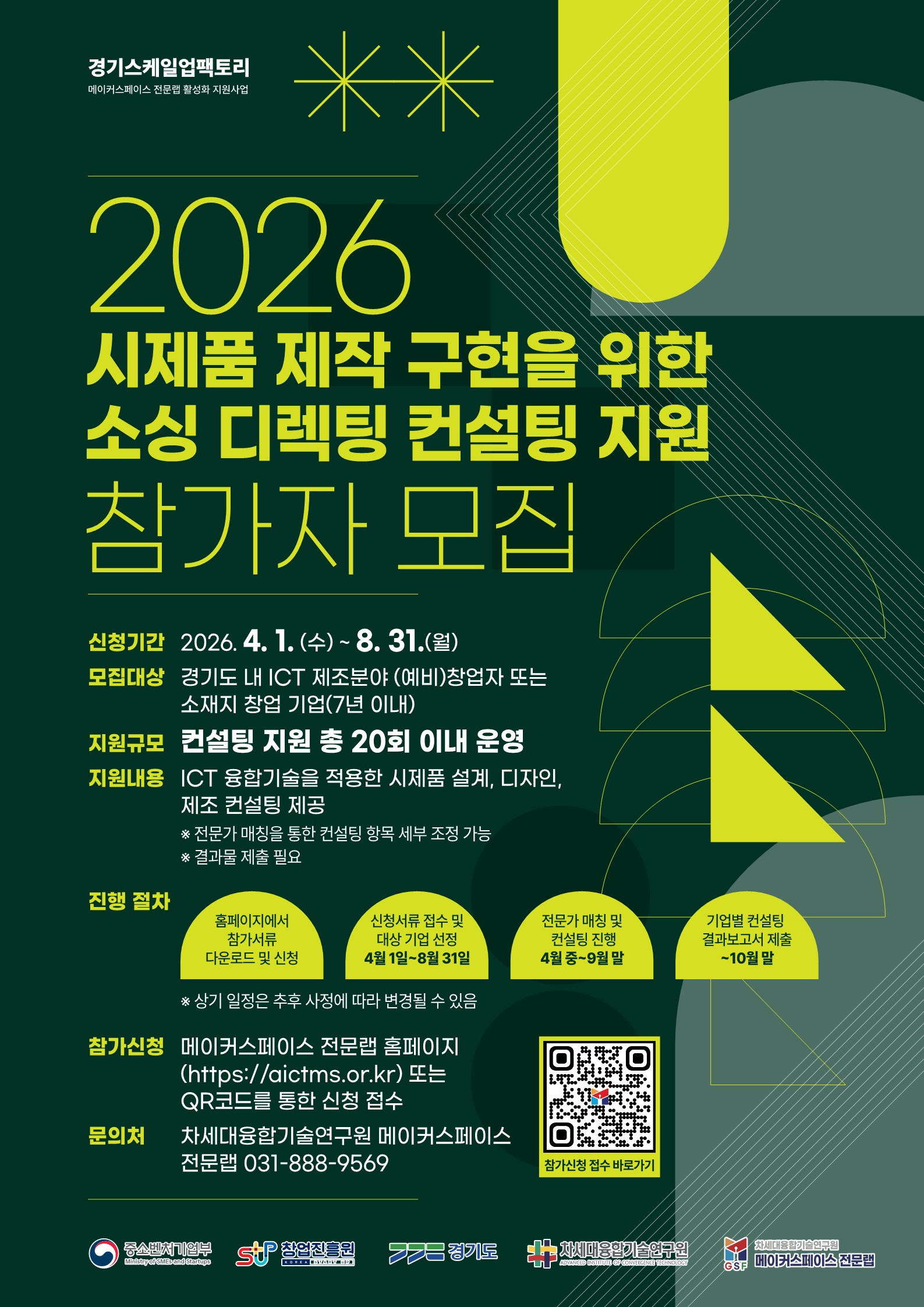 - 경기도 내 ICT 제조 분야 (예비)창업자 또는 소재지 창업기업(7년 이내) ※ 기 창업자의 경우 접수일 이전 사업자등록증 제출